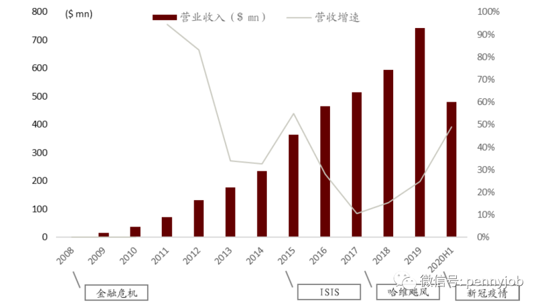 圖 11 PLTR營收情況(2008-2020H1)(圖片來源:中金研究)