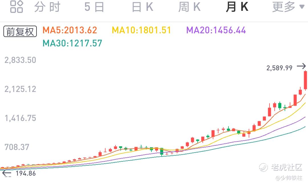 上圖是$貴州茅臺(600519)$ 的月K圖,顯然,又一個再創新高。還會漲嗎?