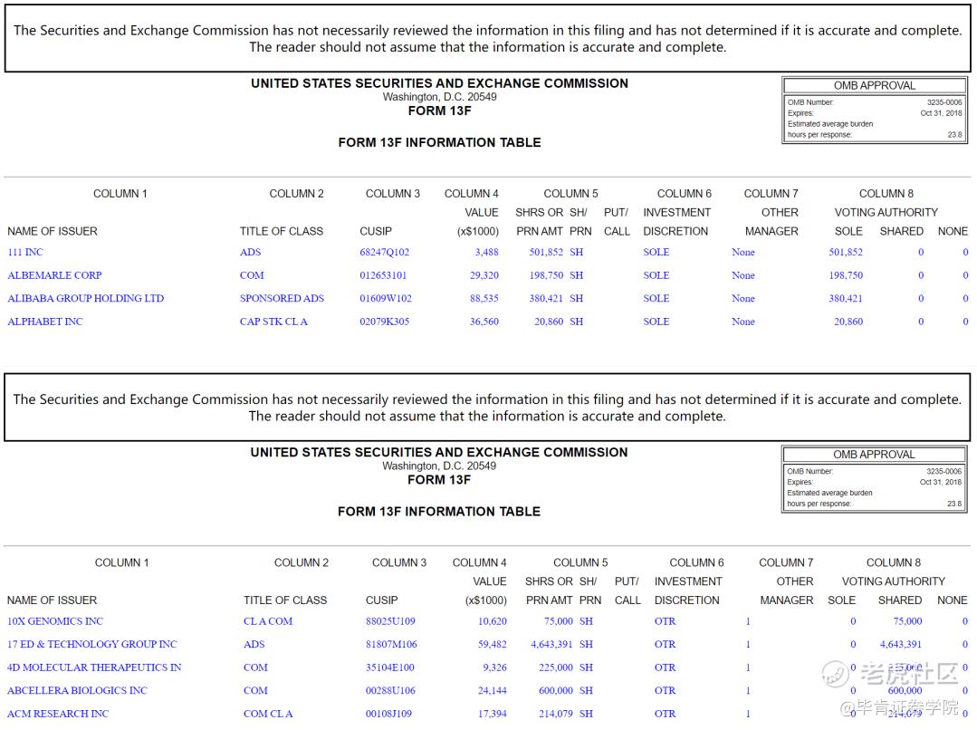 我們來看看高瓴資本和景林資產在美國證券交易委員會(SEC)公佈了2020年末的美股持倉情況。