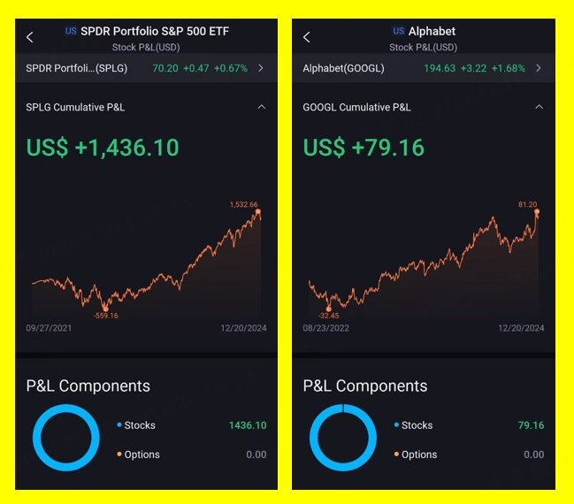 My Top holdings are mainly Singapore stocks - the 2 Singapore Banks. In the US I am more into index ETFs. SPLG is my biggest holding.