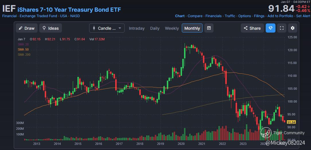$iShares 20+ Year Treasury Bond ETF(TLT)$ $ProShares Ultra 7-10 Year Treasury(UST)$ $iShares 7-10 Year Treasury Bond ETF(IEF)$