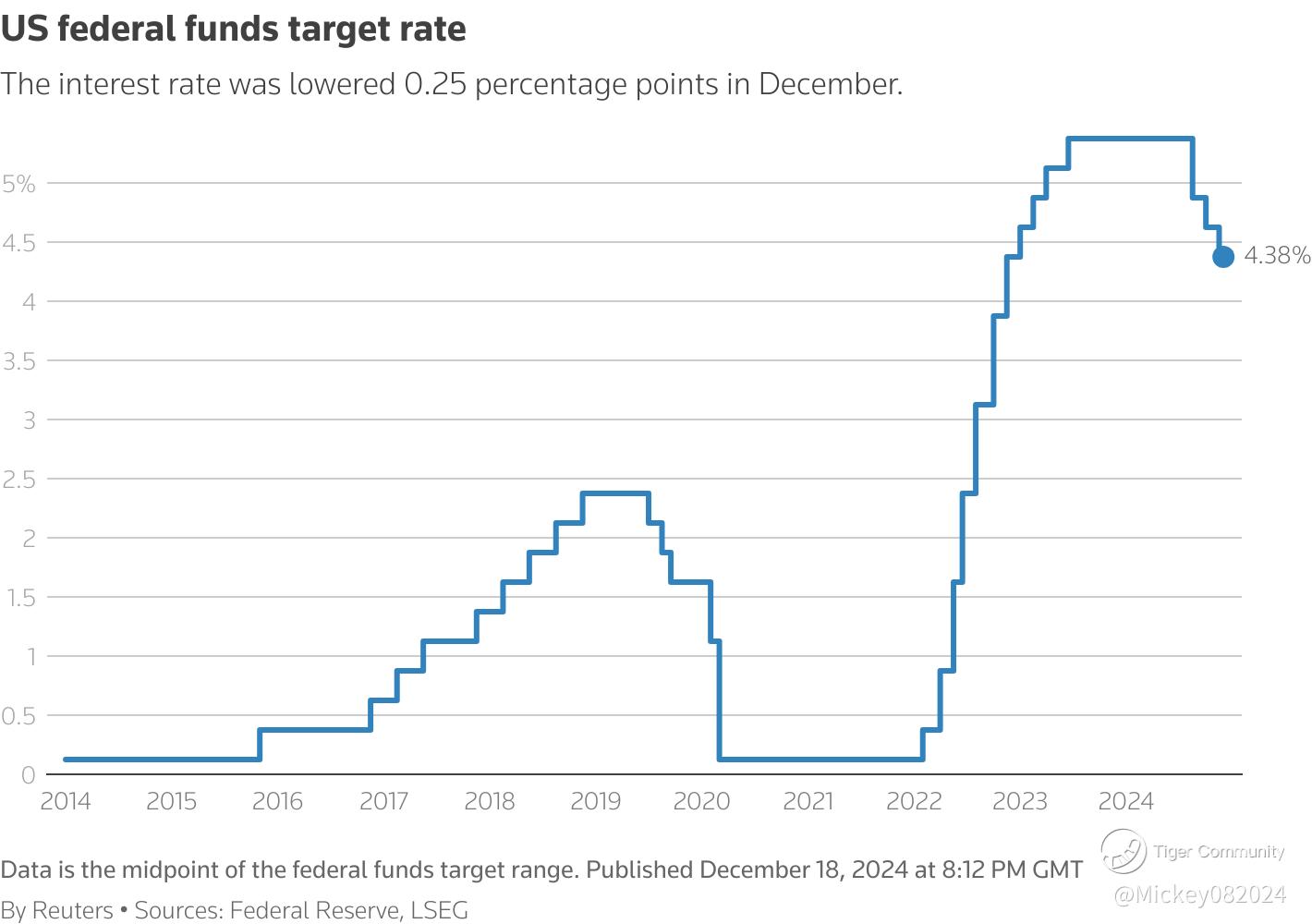 The Federal Reserve cut interest rates on 18Dec24 as anticipated, but Chair Jerome Powell emphasized that further reductions would depend on continued progress in reducing persistently high inflation. Powell's remarks signaled that policymakers are beginning to grapple with potential sweeping economic changes under the Trump administration, prompting a strong market reaction.