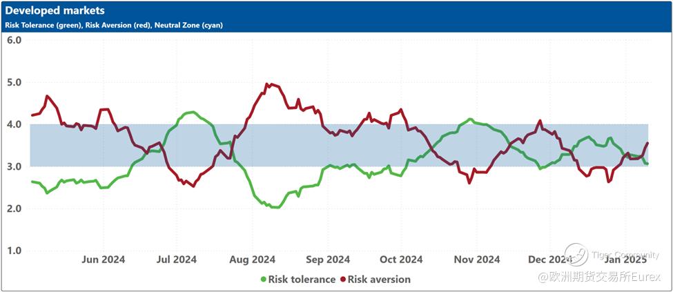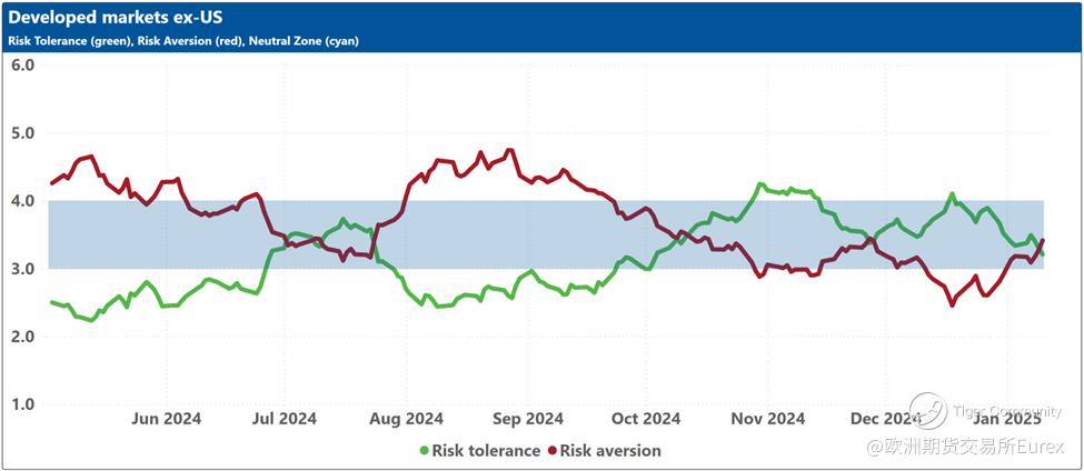 Investors in China, Europe, Japan, and the UK began 2025 with the same mindset they had at the end of 2024. Meanwhile, those in Global Emerging, Global Developed, and Global Developed ex-US markets, as well as in Australia and the US, experienced a slight shift in sentiment. Overall, most investors entered the new year feeling neutral, positive, or bullish, except for US investors who turned negative after the latest FOMC meeting denied their expectations for 4-5 interest rate cuts this year.