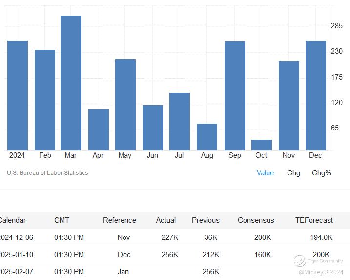 The Bureau of Labor Statistics revealed that December’s non-farm payrolls rose by 256,000, significantly exceeding the forecast of 155,000. The unemployment rate fell slightly to 4.1%, providing the Fed with justification to keep rates stable—or even consider another hike. This report also drove the 30-year Treasury yield briefly above 5%, though it closed just below that level.