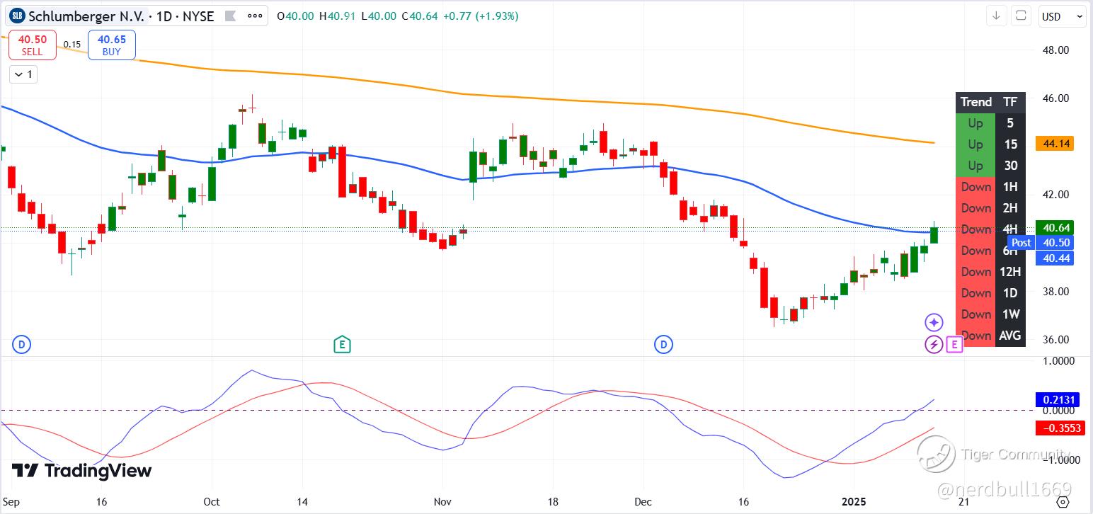 For the MTF, we need to be cautious as it is showing downtrend for most of the periods, this could mean that SLB might suffer a correction upon its earnings.