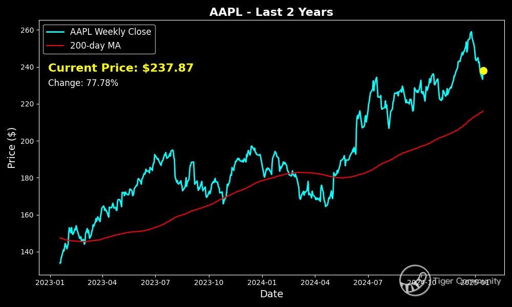 Apple's current stock price of $237.87 with an oversold/overbought score of 32.4% suggests a neutral stance. π