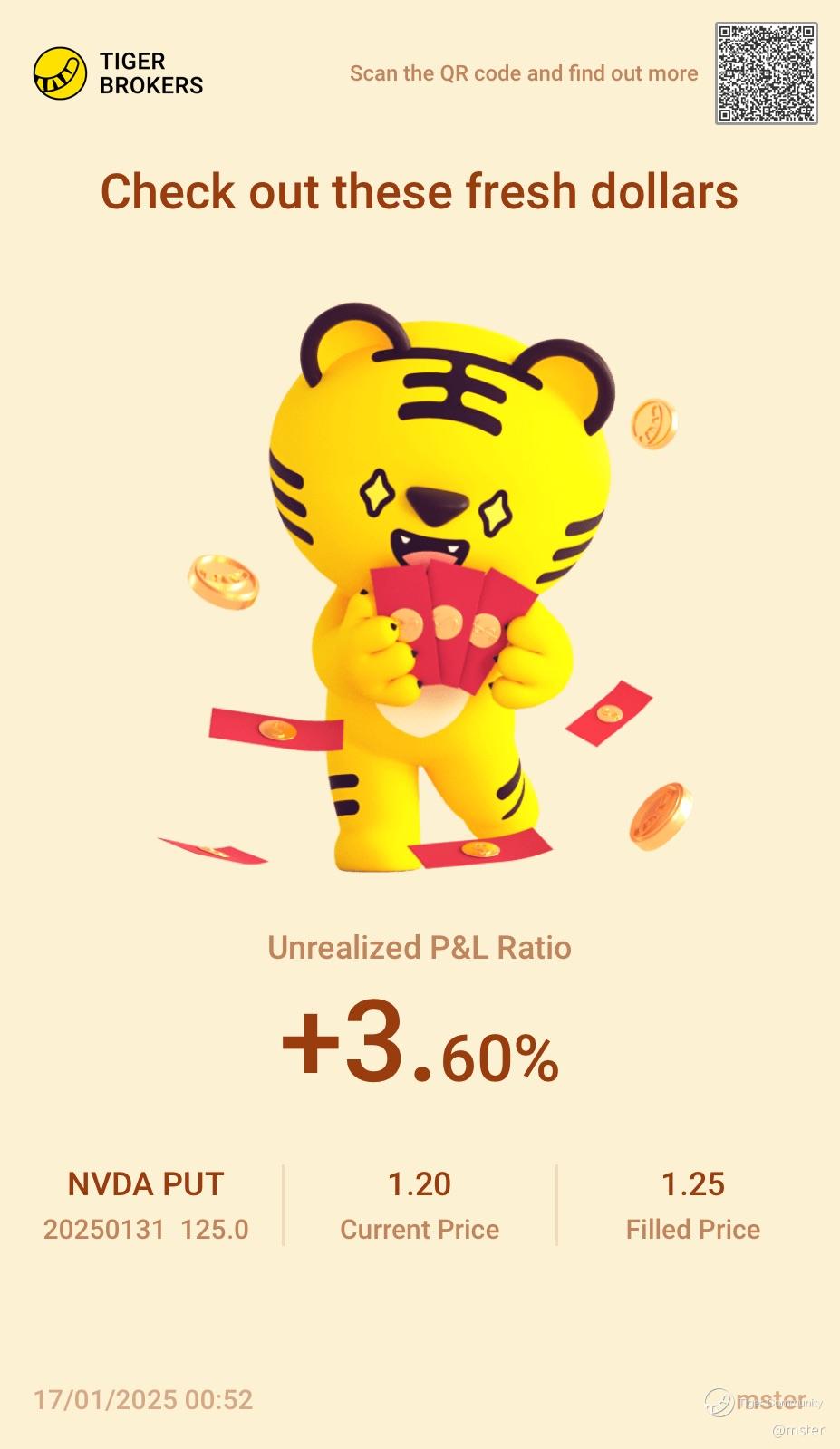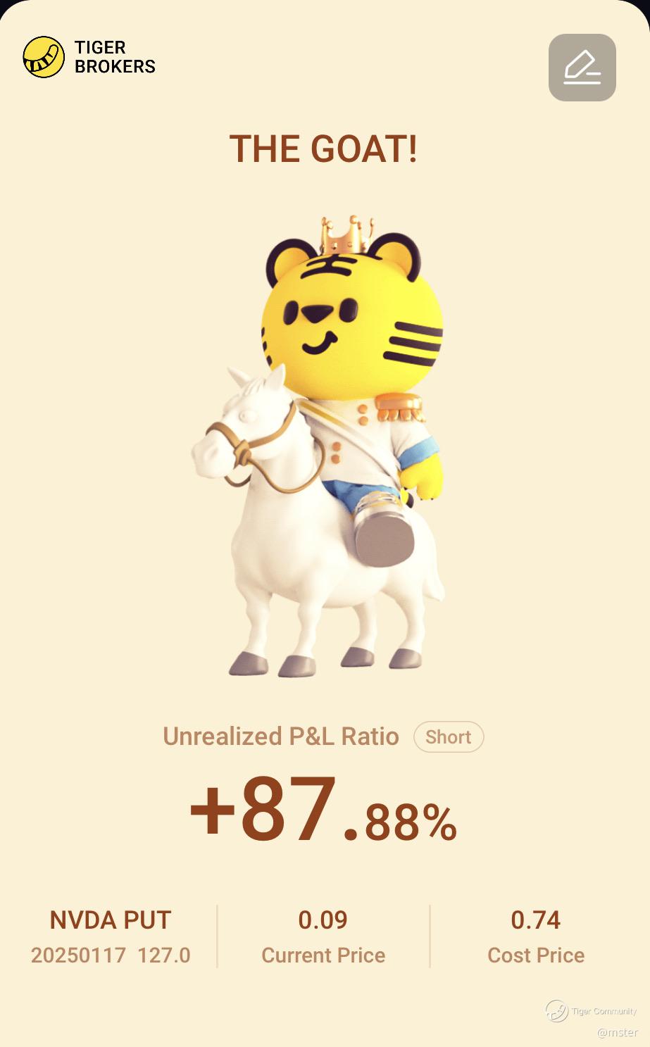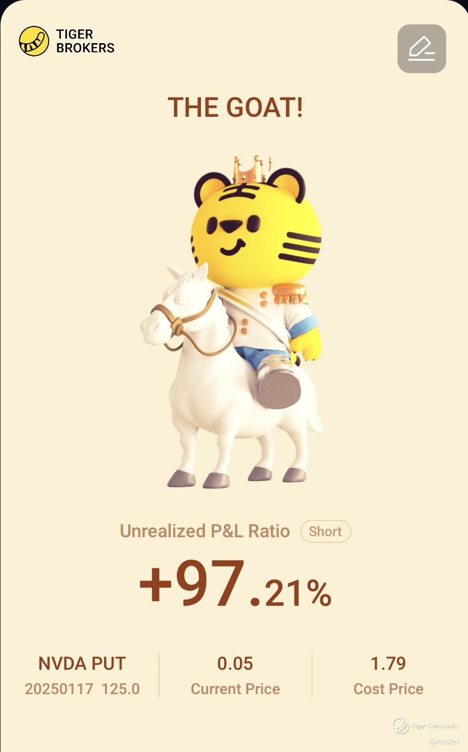 Have couple of put positions on NVDA expiring tomorrow, likely will expired worthless, thus open a usual bi-weekly CSPut contract while NVDA pulls back. NVDA has been rang bound for 3 over months now between 128 and 149. Thus the 125 strike a pretty save level to place, if the share price do dip below will be happy to take assignment. $NVDA 20250131 125.0 PUT$