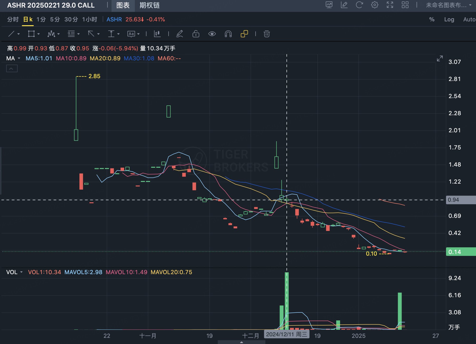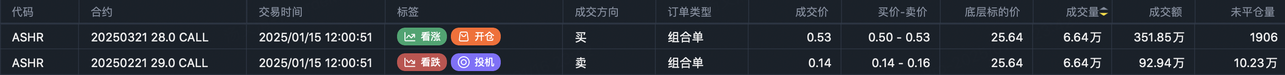The large single-leg call position of 66,400 contracts traded on December 10-11 $ASHR 20250221 29.0 CALL$ has rolled to March $ASHR 20250321 28.0 CALL$