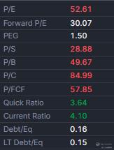 Price-to-Earnings (P/E) Ratio: At 53.2, Nvidia's P/E ratio indicates it is an expensive stock.
