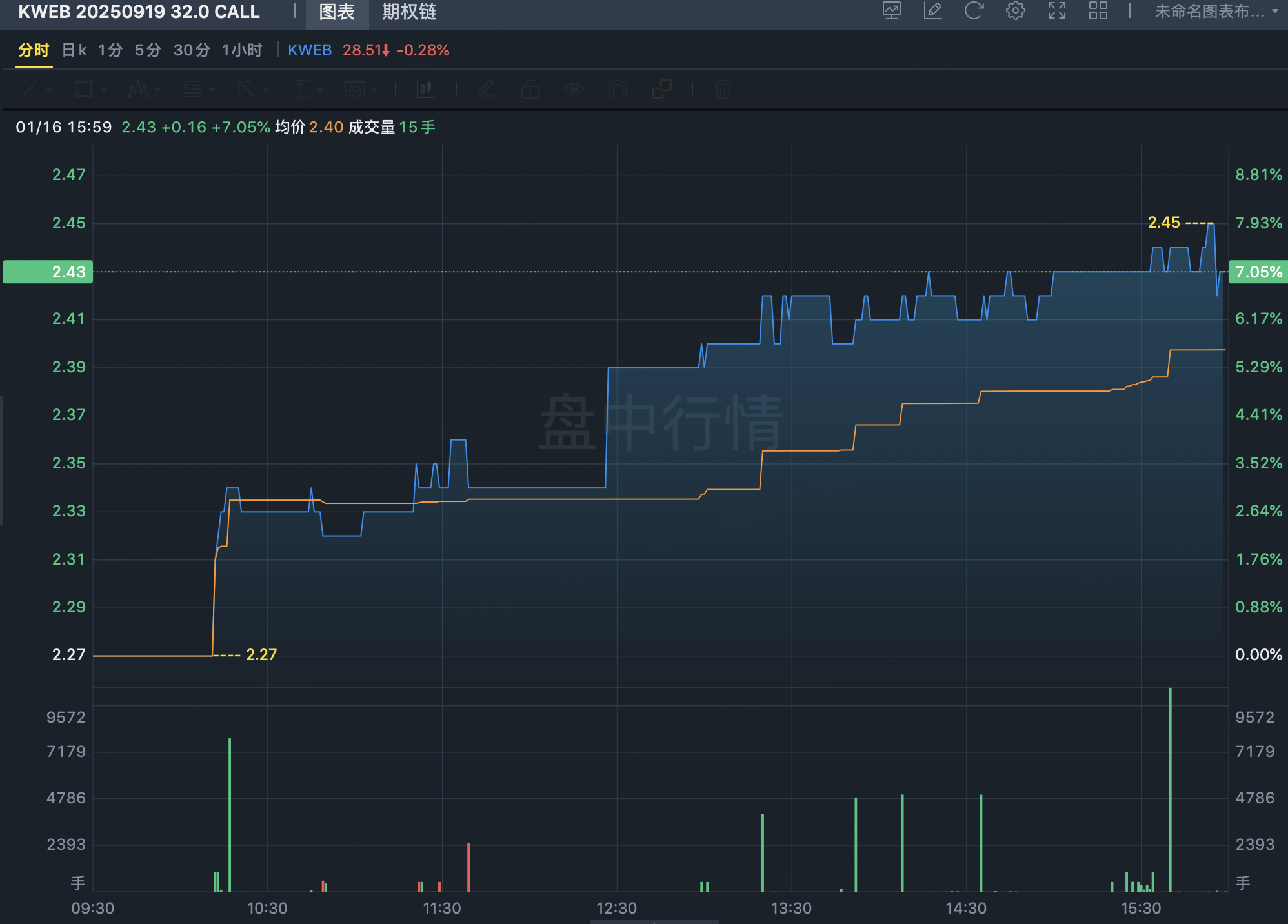 $KWEB 20250919 32.0 CALL$ September-expiring 32 call, exchange-traded, opened 46,000 lots, total transaction value approximately 11 million.