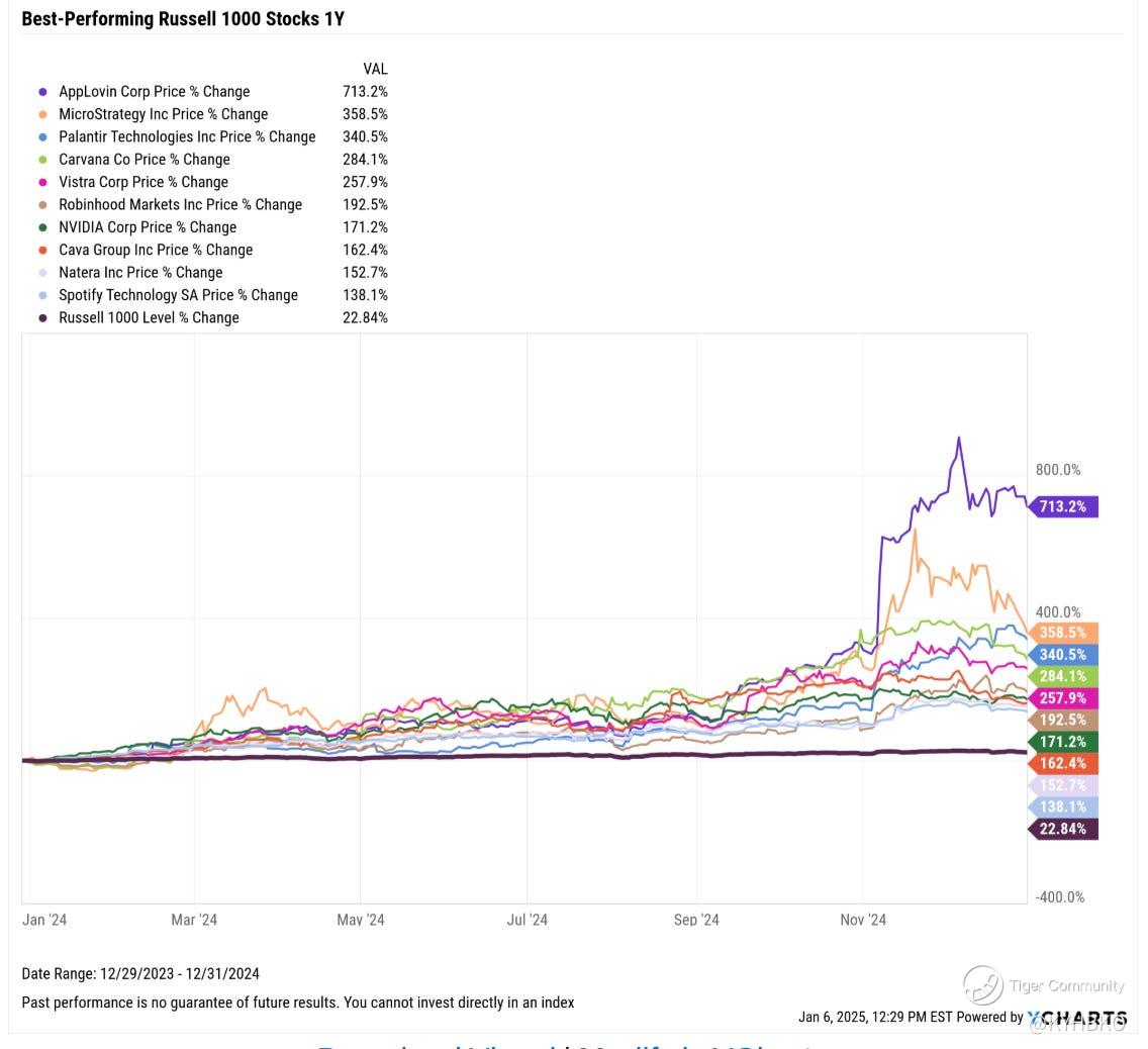 These are the best-performing stocks from the Russell 1000. I am glad to stumble upon new stocks like AppLovin Corp, Natera and Vistra. Let us research before adding them to our portfolio.
