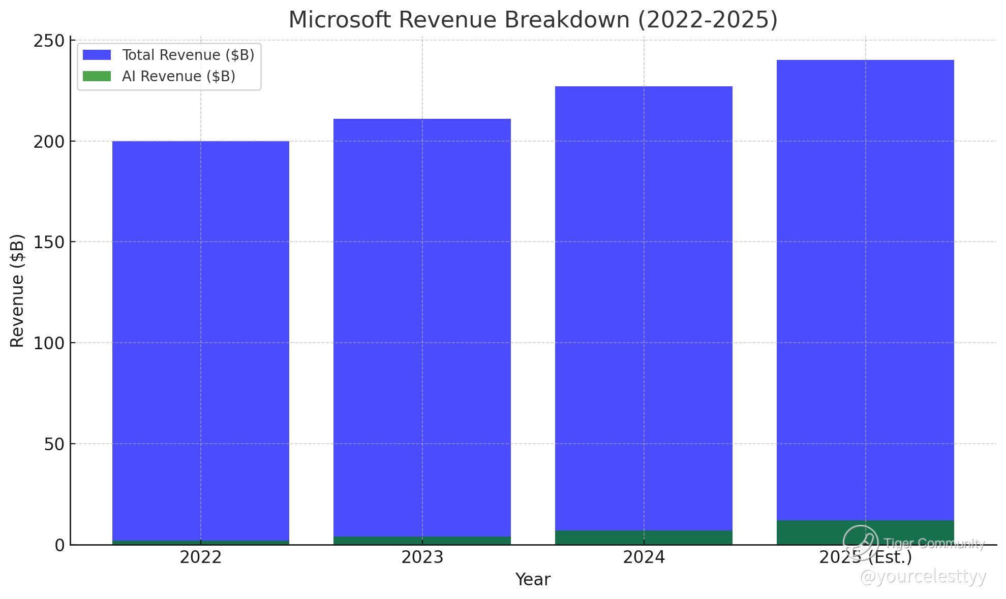 Revenue Impact: Analysts estimate AI contributed $7 billion to Microsoftās total revenue in 2024, representing 5% of its overall income.