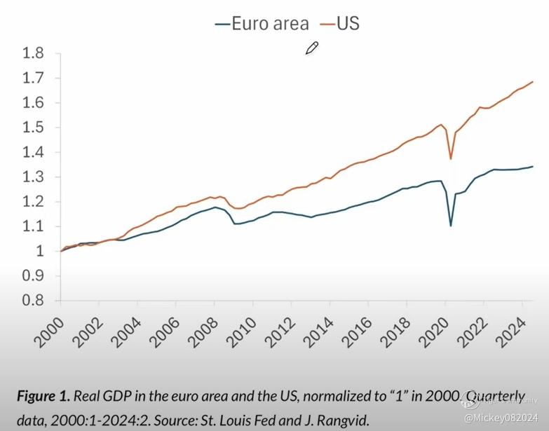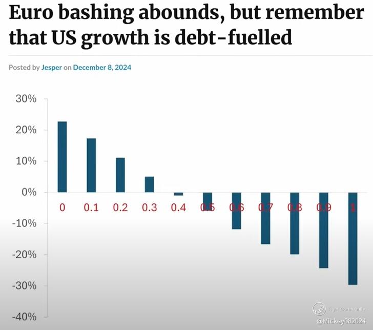 A fascinating article by Jesper Rangvid, a finance professor at Copenhagen Business School, compared the debt-fueled growth of the U.S. to the Euro area. While both regions experienced moderate growth in the early 2000s, the U.S. surged ahead after the housing bubble, supported by a sharp rise in debt-to-GDP ratios. In 2007, U.S. debt-to-GDP was 45%; today, it's nearly 100%.