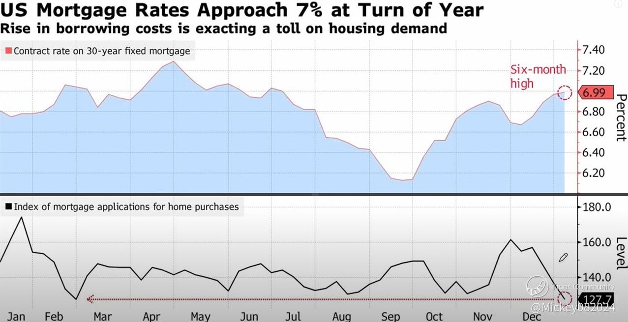 The market is starting to take notice. According to Bloomberg, global bond markets are under pressure. Interest rates on 10-year U.S. Treasury notes have risen from 3.6% to nearly 5%, and some speculate rates could stabilize at 5% or even climb higher. Concerns over debt sustainability are spreading globally, from the U.K. to Japan. In the U.S., 30-year mortgage rates are hovering just under 7%, weighing on housing purchases and contracting housing demand. This, in turn, dampens spending and could eventually lead to a recession.