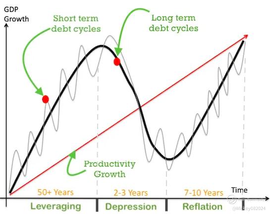 Dalio recently shared some excellent insights, including three chapters from his upcoming book. Until about a week ago, everything seemed to be going well—strong economic growth and solid job data. However, Dalio notes that during this phase, markets and economies appear robust, and borrowing drives growth, creating wealth seemingly out of thin air.