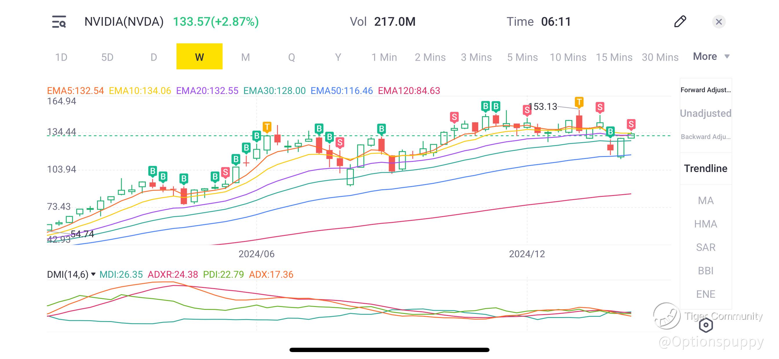 By analyzing both the EMA and DMI indicators, it was clear that NVDA’s bullish momentum was weakening, and the stock was facing significant resistance. Selling at $133.23 was a strategic move to lock in profits and mitigate the risk of a price correction. This decision underscores the value of technical analysis in making informed trading choices$NVIDIA(NVDA)$