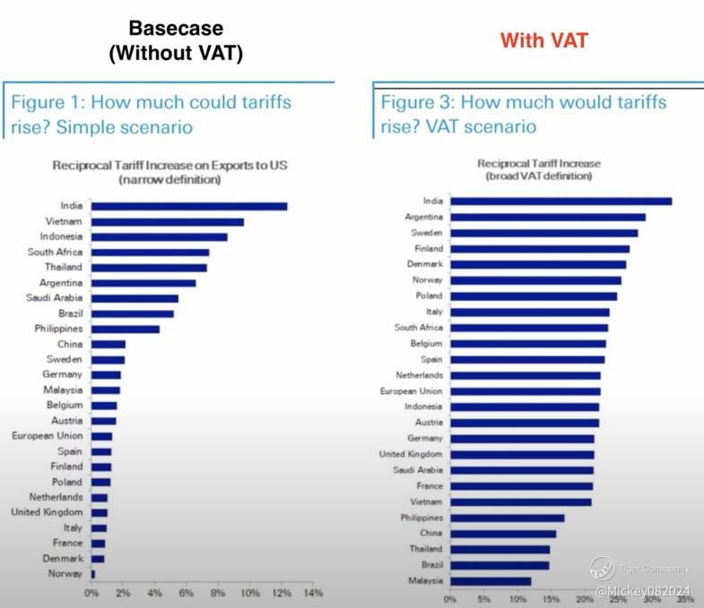 However, when VAT is factored in, the scope of Trump’s tariffs expands dramatically, impacting the entire world. India, for instance, could face a reciprocal tariff exceeding 30%—essentially blocking many Indian products from entering the U.S. market. And the fallout doesn’t stop there...