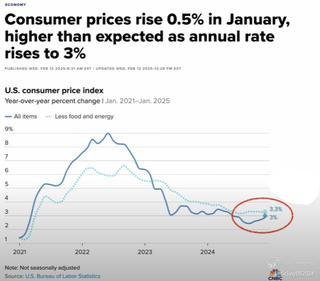 The numbers speak for themselves: headline CPI has jumped back to 3%, marking the largest increase in six months, with consumer prices rising another 0.5% in January. Core inflation, which excludes food and energy, has been stuck at 3.3% since June of last year. Simply put, the Federal Reserve is losing its battle against inflation.