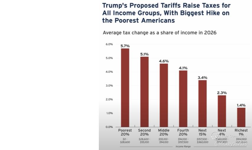 Households will effectively face an additional tax of over 5% of their income due to these tariffs. For the middle class, the burden will be around 4%. This is an unseen inflation tax that few are discussing. While it won’t significantly impact the top 20%—especially those at the very peak—it will severely limit the purchasing power of the broader consumer class. For the average person, it will feel just like inflation, making the Federal Reserve’s fight against rising prices even more difficult.