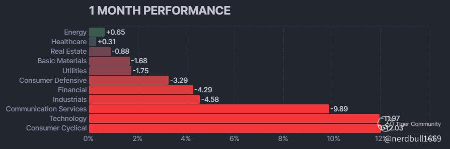 If we looked at the QQQ, it is still 10% down from its highs, the biggest laggers are consumer cyclicals and technology over this past one month of trading.