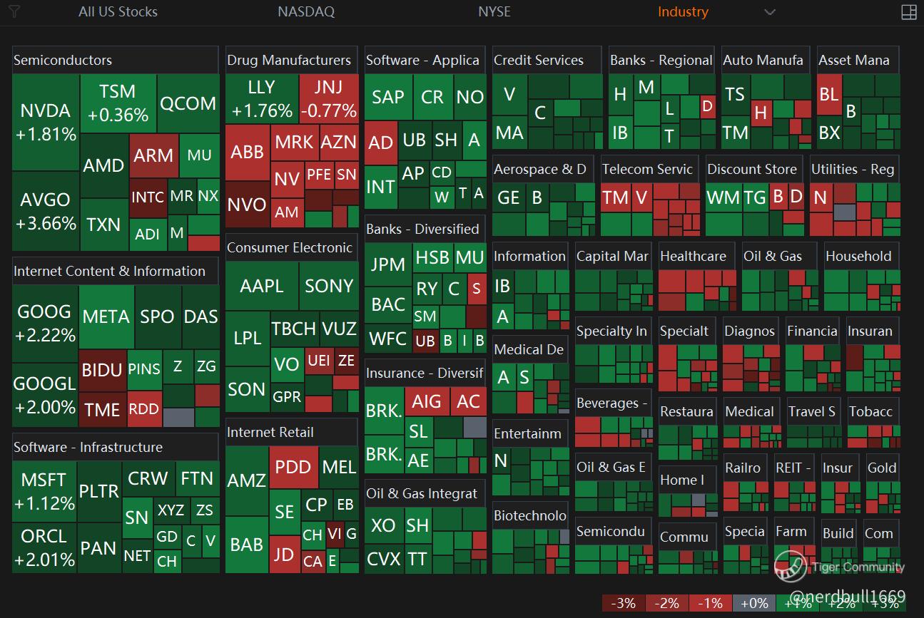 The big tech names are finally coming back from the recent dip, financial and banking names are making good responses to the Fed comment and news. Though we saw that healthcare sector closed in a bit mixed, heavy weighted consumer defense stocks like Walmart, Costco, Proctor and Gamble also help to lift the NASDAQ index.
