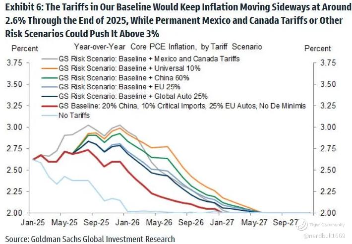 If we looked at the Goldman Sachs projections from their investment research, this is inline with the chart below, the chart is plotted to show what are the baseline expectations for inflation, how high can it go, how long will it stay as a result of the tariffs.