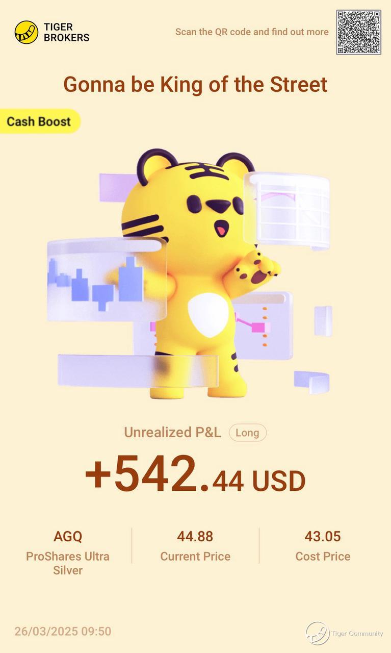$ProShares Ultra Silver(AGQ)$ I made a small profit again today, so I bought myself a chicken leg to reward myself. I will continue to increase my holdings and hold on firmly!