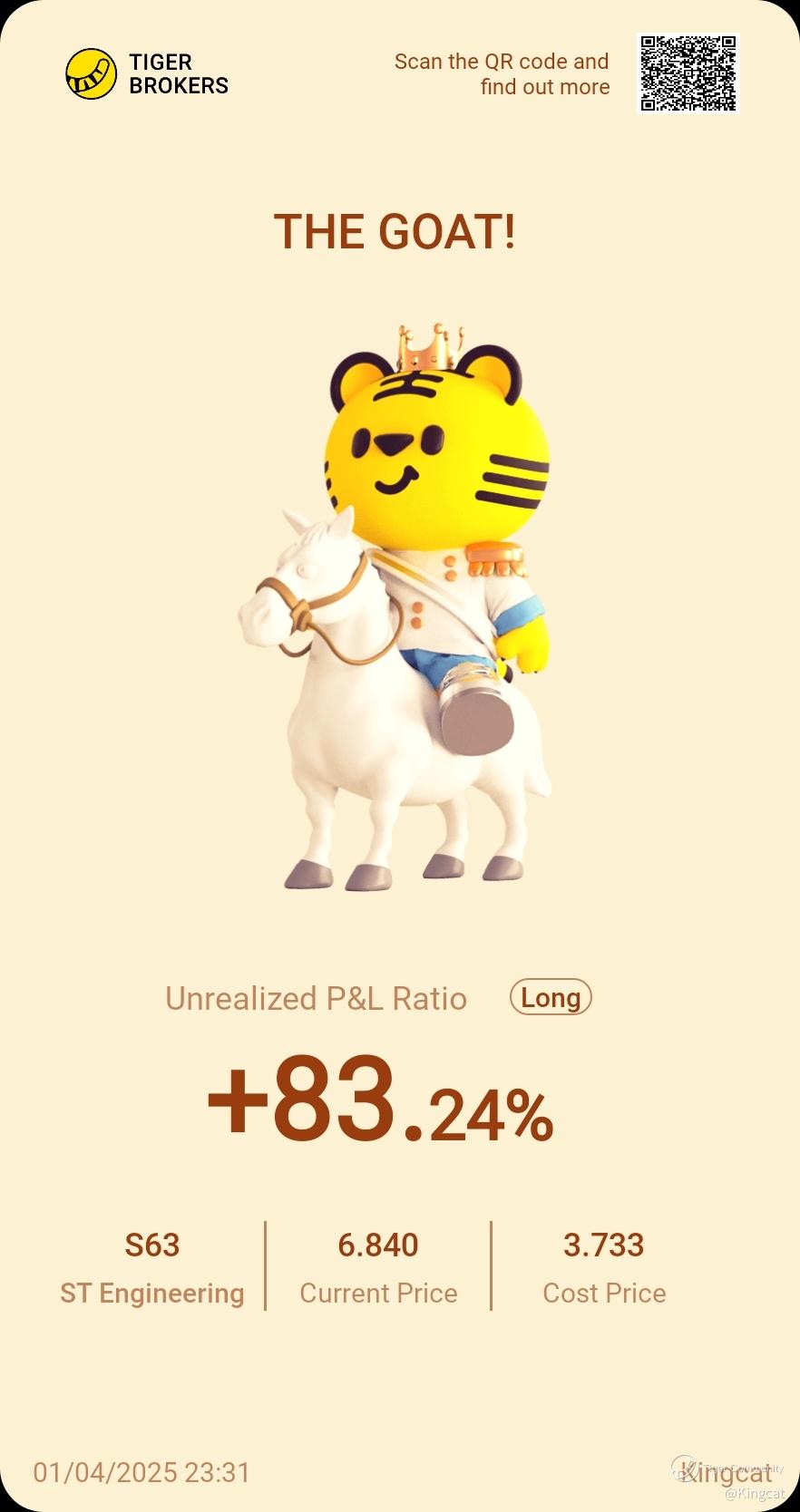 $ST Engineering(S63.SI)$ This well-managed, multi-industry Singaporean company has demonstrated impressive growth, with its share price nearly doubling recently, reflecting its strong strategic execution and market resilience.