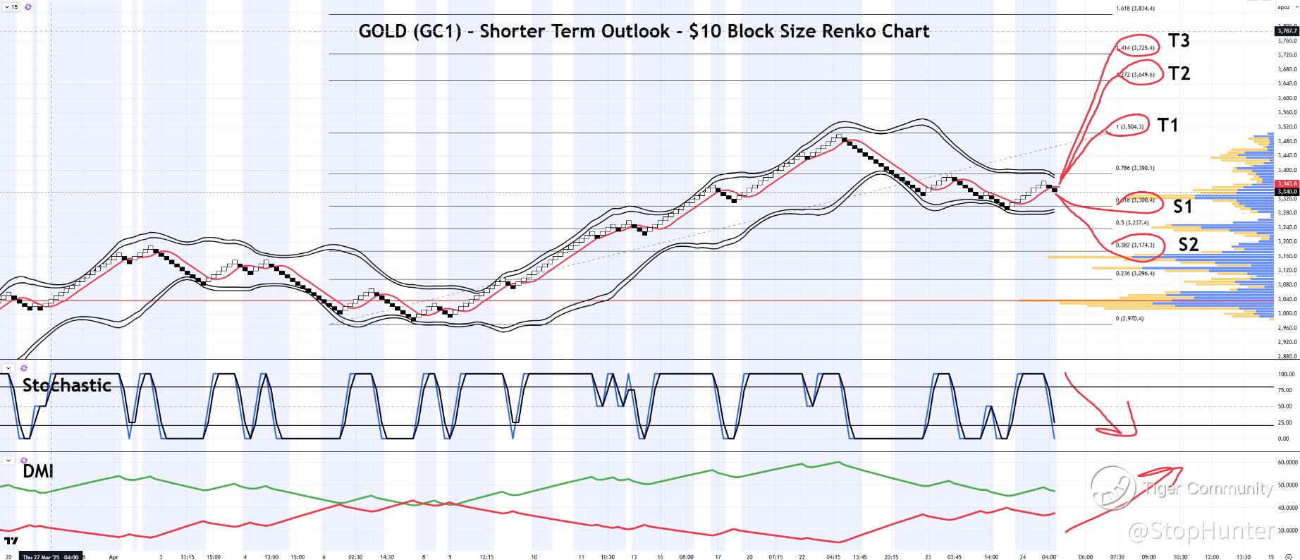 🔸 Renko Trend Play: • Buy above $3,400 • Targets: $3,500, $3,650, $3,750 then $4000! • Stop: below $3,300. Downsides $3300, $3200