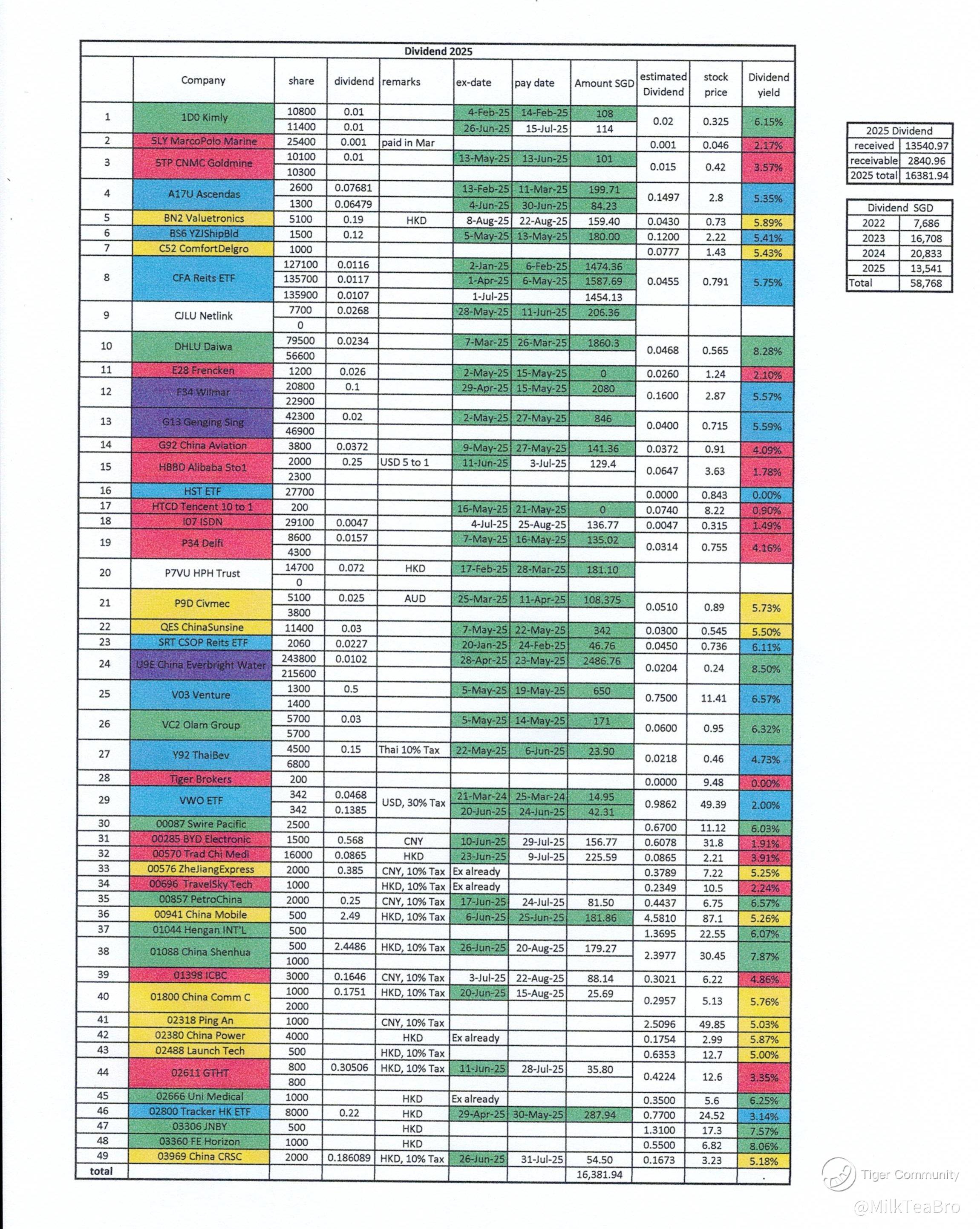 I booked dividends 16K SGD, 13K has been sent to my account by June 2025.
