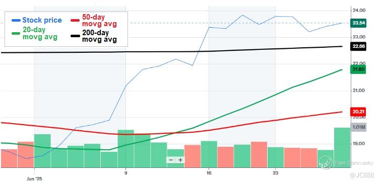 With a 20/50-Day MA "Golden Cross Lite" crossover, suggests increasing momentum and usually precedes extended gains. (in principal theory, don’t quote me !)