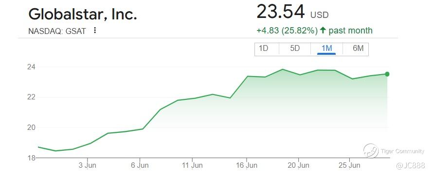 Over the past month, GSAT stock has surged from around $18.50 to over $23.40, reflecting strong upward momentum and significant gains.
