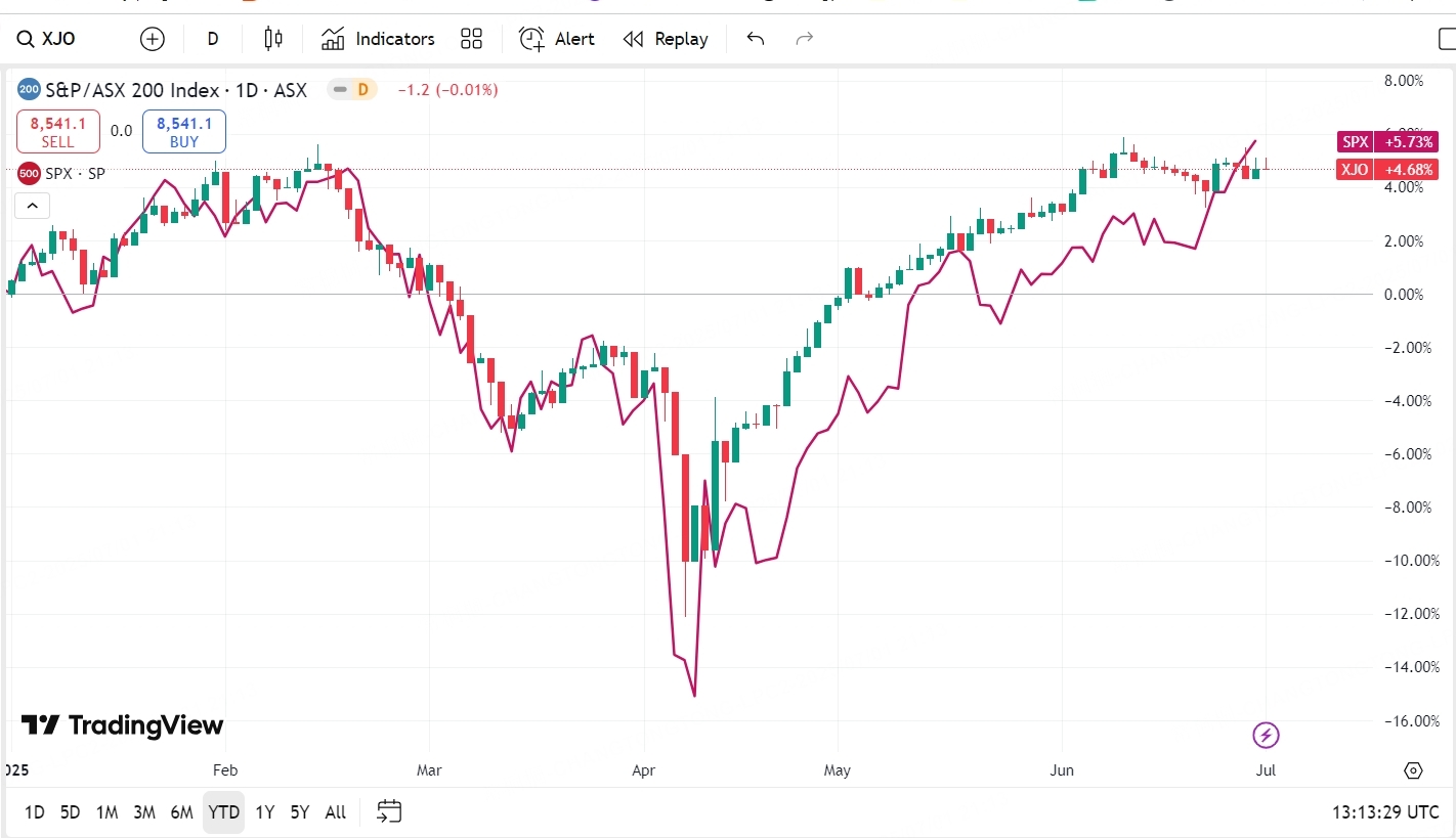 $S&P/ASX 200(XJO.AU)$ closed at 8541, up 4.68% YTD, slightly lower than $S&P 500(.SPX)$’s return.