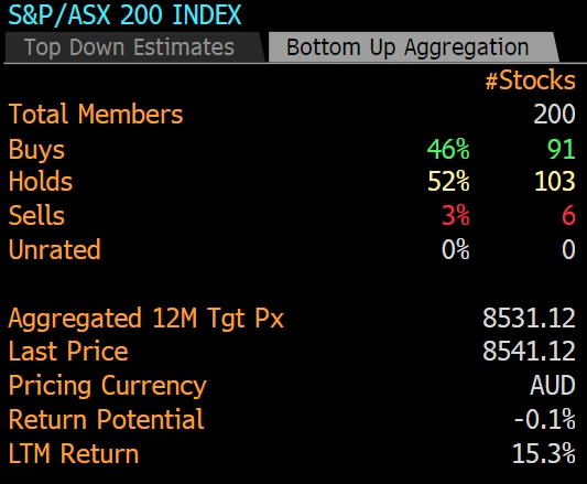 According to Bloomberg data, the 12-month average target for the ASX 200 stands at 8,531 points.