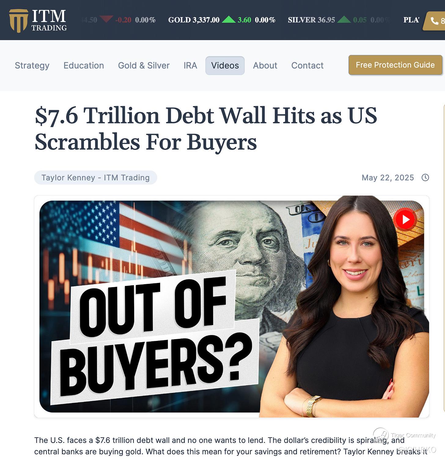 Article dated 22May2025. Source https://www.itmtrading.com/blog/7-6-trillion-debt-wall-hits-as-us-scrambles-for-buyers/