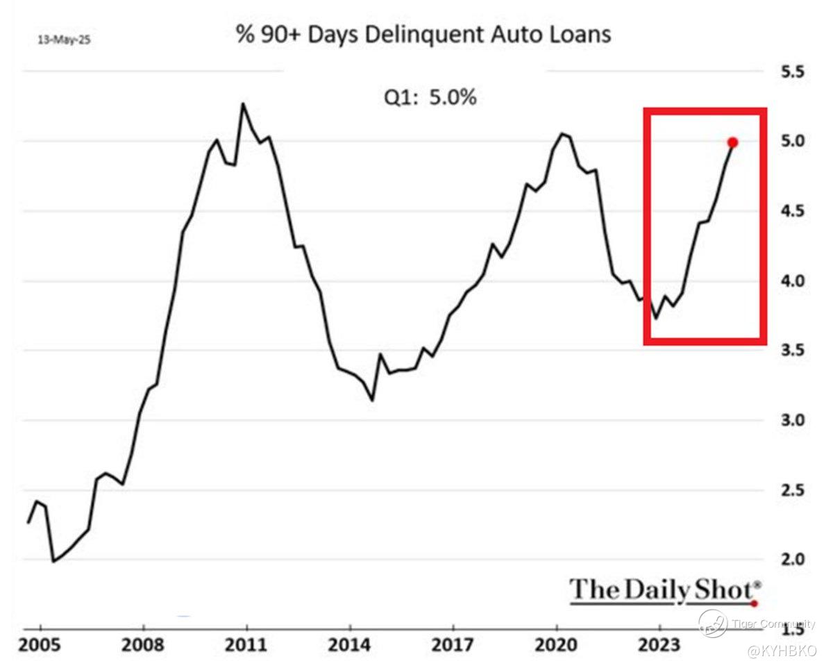 US consumers are FALLING behind on their debt: 20% of the lowest-income Americans' credit card debt was seriously delinquent in Q1 2025, the highest share in 14 YEARS. Nationwide, ~13% of credit card debt was past due 90+ days, the highest since 2011 - X user Global Markets Investor