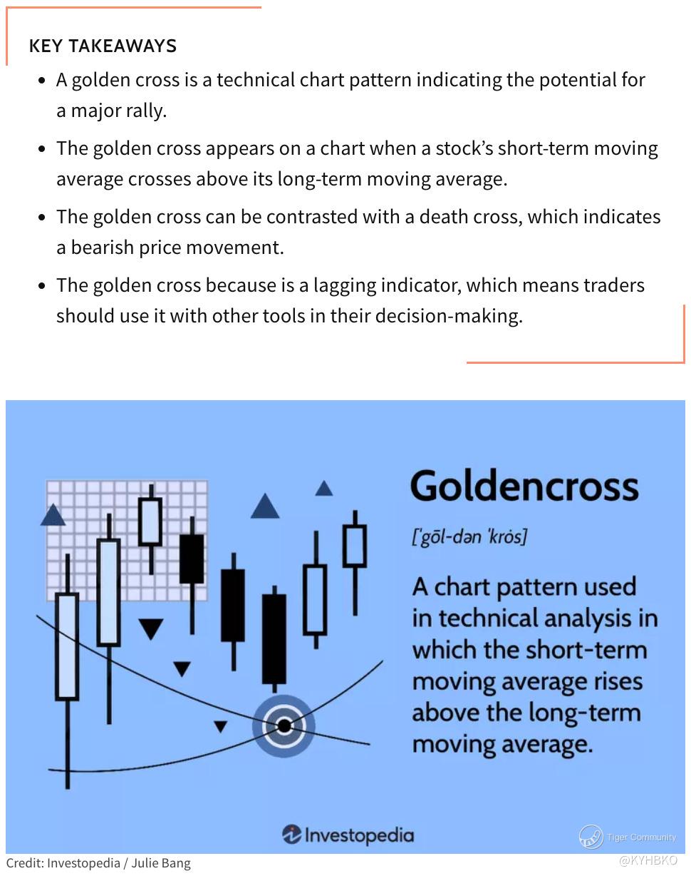 A golden cross is completed. This is typically a bullish signal when backed with strong volume.