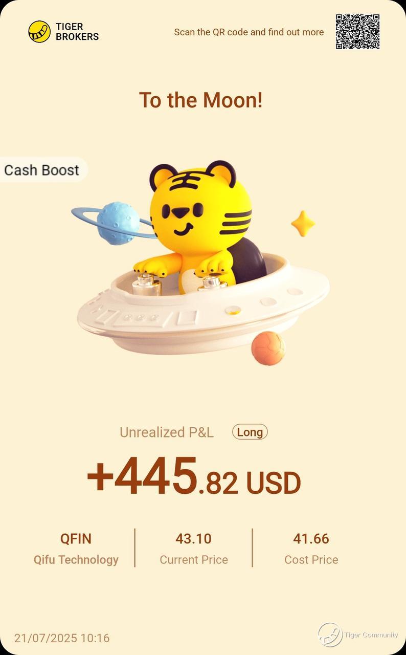 $Qifu Technology(QFIN)$ 's rebound aligns with fintech sector recovery! Improving loan demand boosting earnings outlook. Keeping positions modest given regulatory uncertainties - took partial profits while maintaining core exposure.