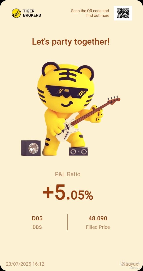 $DBS(D05.SI)$ bought on 10 July, saw 5% profit just take