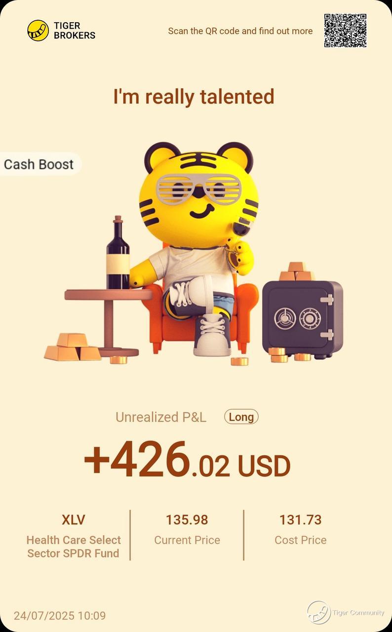 $Health Care Select Sector SPDR Fund(XLV)$ Got lucky with XLV this round—healthcare’s steady performance and strong defensive edge paid off. A modest profit feels great! Hope everyone rides the trend and locks in steady gains too!