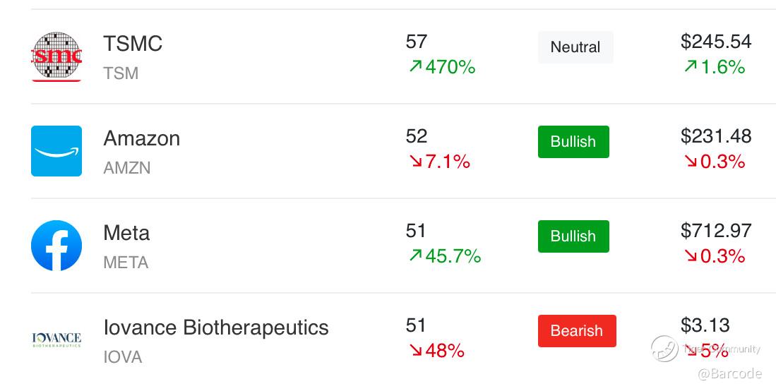 High bullish sentiment, but AI doesn’t love it. It’s still trailing $NVDA in high-end inference, but MI325 is gaining ground in data centers. Watch margin commentary closely.