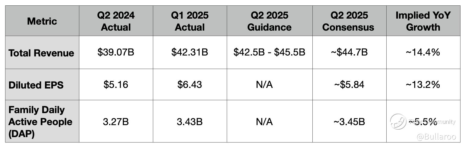 Revenue: Expected to be between $44.5 billion and $44.8 billion, representing a strong year-over-year increase of approximately 14-15%. This sits at the upper end of Meta's guidance of $42.5 billion to $45.5 billion.