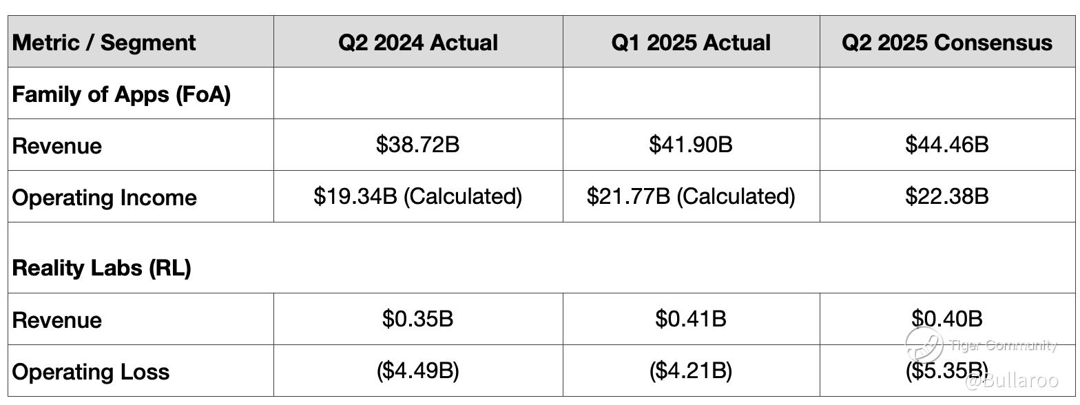 Table 1: Meta Q2 2025 Earnings Snapshot & Analyst Consensus
