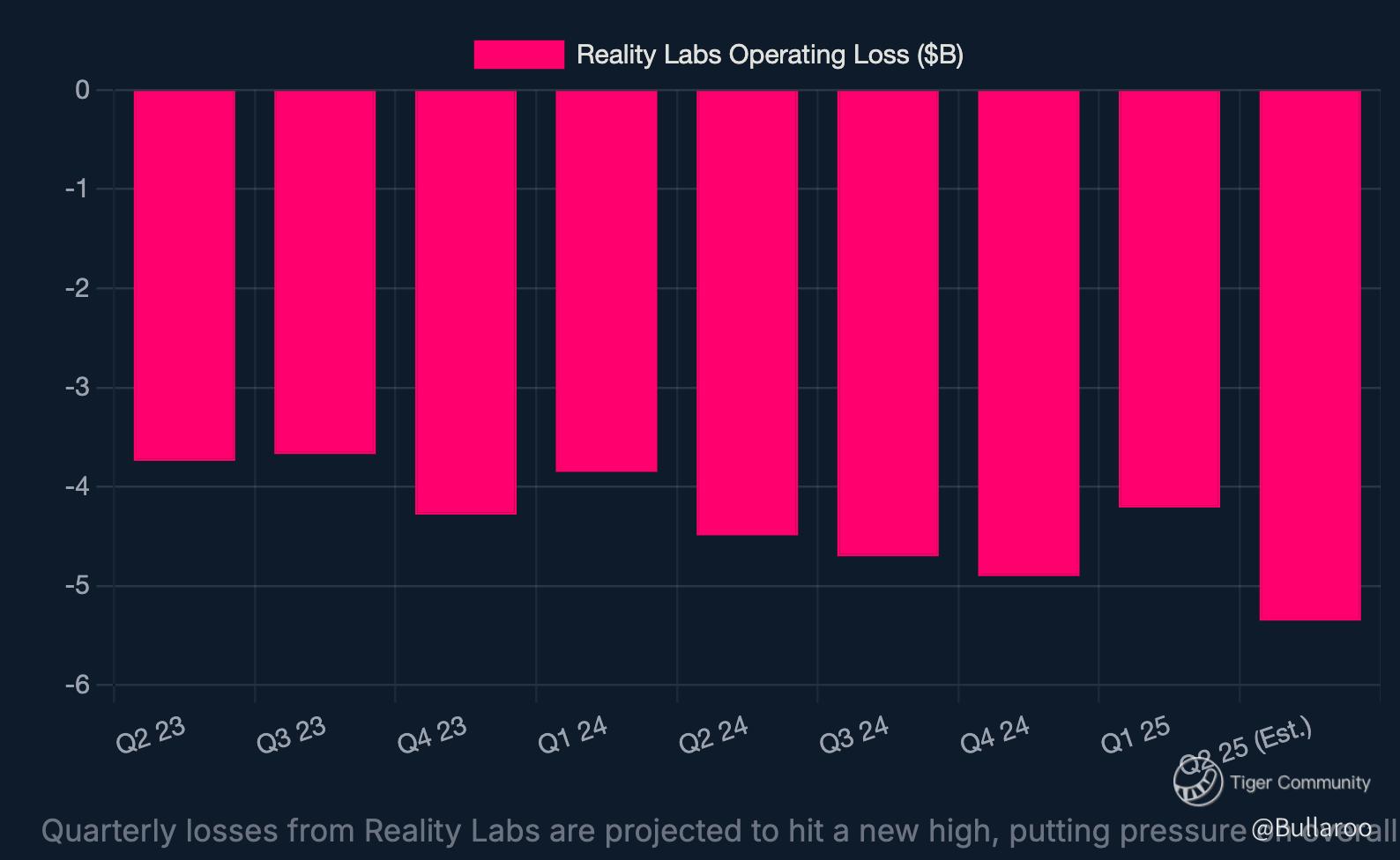 The metaverse division continues its trajectory of staggering losses. For Q2, the operating loss for RL is expected to widen to approximately $5.35 billion, up from a $4.5 billion loss in the same quarter last year. This equates to burning over $1.7 billion per month on a vision that has yet to produce a clear path to profitability.
