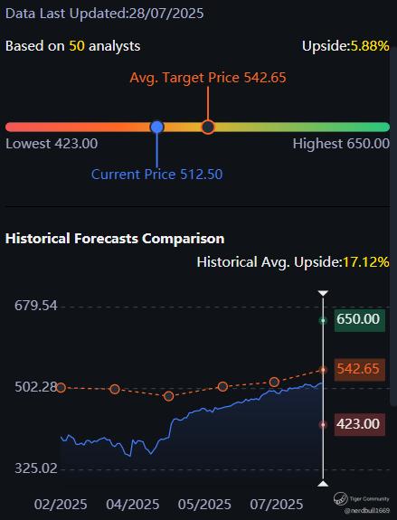 Based on 50 analysts from Tiger Brokers offering 12 month price targets for Microsoft in the last 3 months. The average price target is $542.65 with a high forecast of $650.00 and a low forecast of $423.00. The average price target represents a 5.88% change from the last price of $512.50.