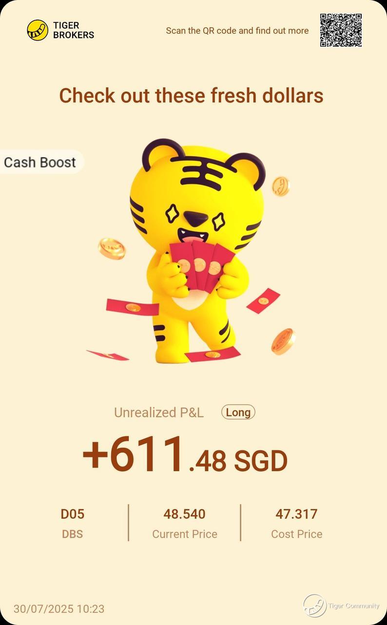 $DBS(D05.SI)$ dip-buying paid off. Strong fundamentals and steady earnings growth reinforce its value as a regional banking leader. Bullish long term.