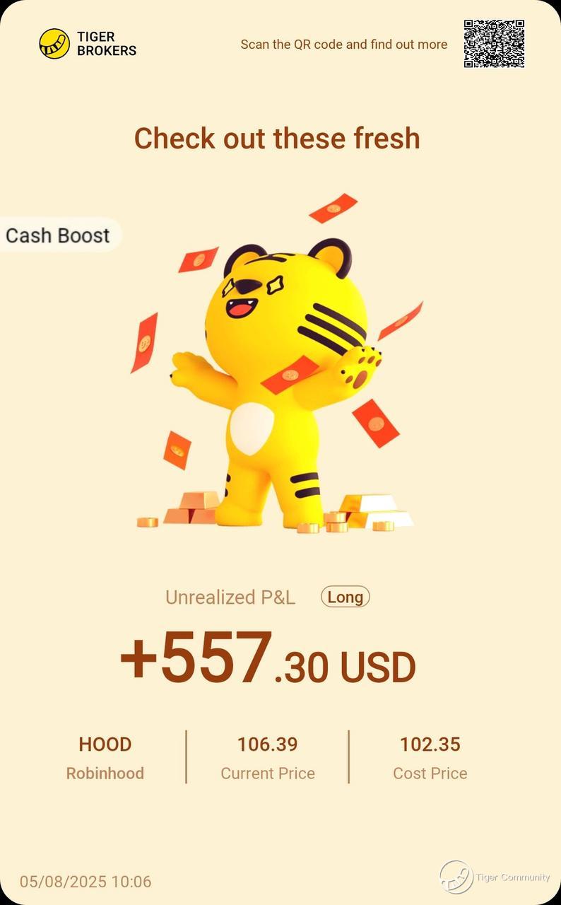 $Robinhood(HOOD)$ Booked a tidy gain on HOOD! Q2 numbers beat expectations, and crypto volumes are heating up again. Happy to ride the bounce. Wishing everyone steady wins ahead—stick to your plan!