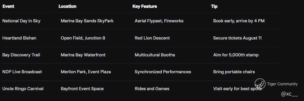 Preparation: Reserve SkyPark tickets early next year or grab heartland passes from Community Clubs starting August 11. Bring water, hats, and flags.