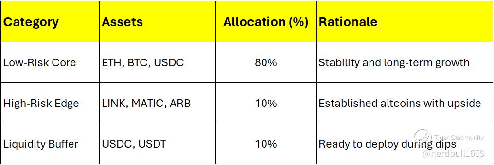 • Liquidity Advantage: Keeping 20% in stablecoins allows you to pounce on opportunities when they arise.