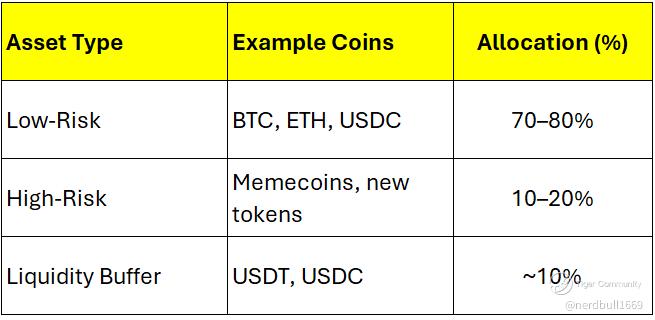 • Small allocation to high-risk assets (e.g., meme coins, emerging altcoins)